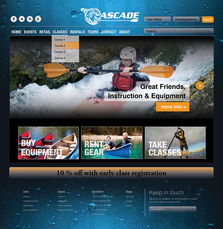 Website design for Cascade Paddle Sports.